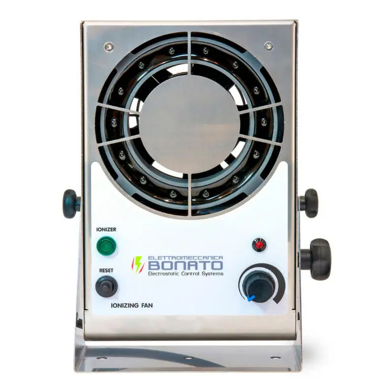 The IF-01 ionizing fan has been designed to break down antistatic charges very quickly and bring the balance to +/- 3V. Its emitters are connected via high voltage resistors and encapsulated with epoxy resin to have the maximum ionizing effect as well as making the emitters safe to the touch. Thanks to its design, cleaning the emitters is also very simple. The IF-01 ionizing fan has one LED indicating the presence of voltage while the other indicates the correct functioning of the ionization. The ionized air flow is adjustable and can reach 1.2 meters away, which is why it is suitable for various applications, especially for the electronics, plastic, medical and RFID industries.
