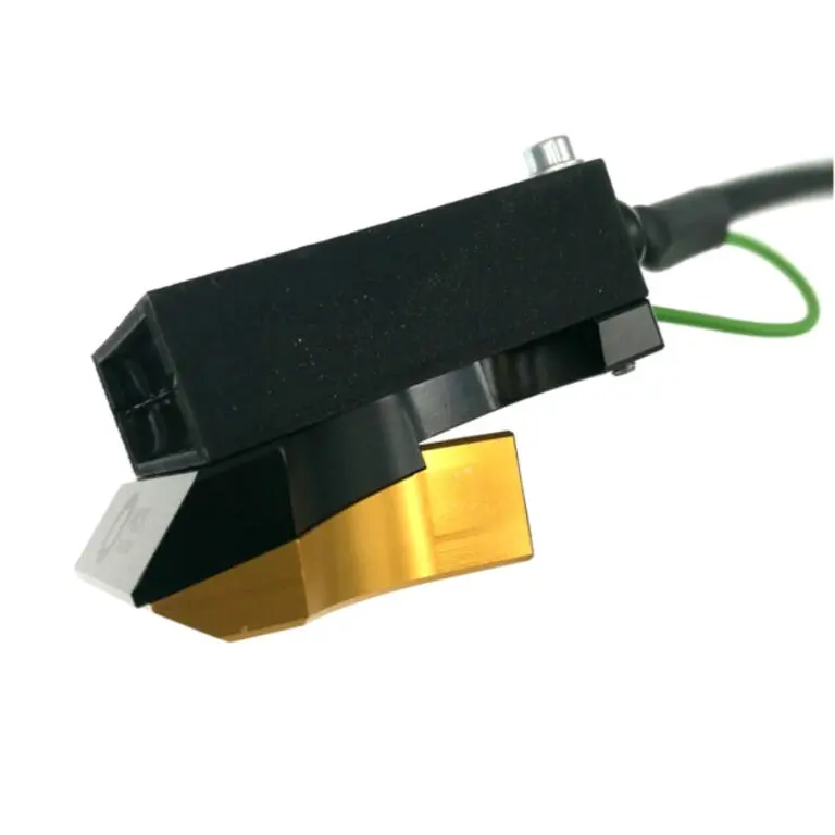 Antistatic bar for a flat nozzle contains 4 ionizing pins. When compressed air flows from the thin slot of the flat nozzle, volume is amplified by the ambient air. That compressed air pick up the ions (without unwanted discharging) and directs them on the surface of products. That is why it can very effectively eliminate electrostatic charges that are occurring on the surface of products. The ionizing pin is shockless. The combination of ionizing pin and flat nozzle achieves high static charge removal effectivity with very low noise level and with low air consumption. Antistatic pin with flat nozzle can be placed on mounting bracket on tube on alumnium profile, see picture below.